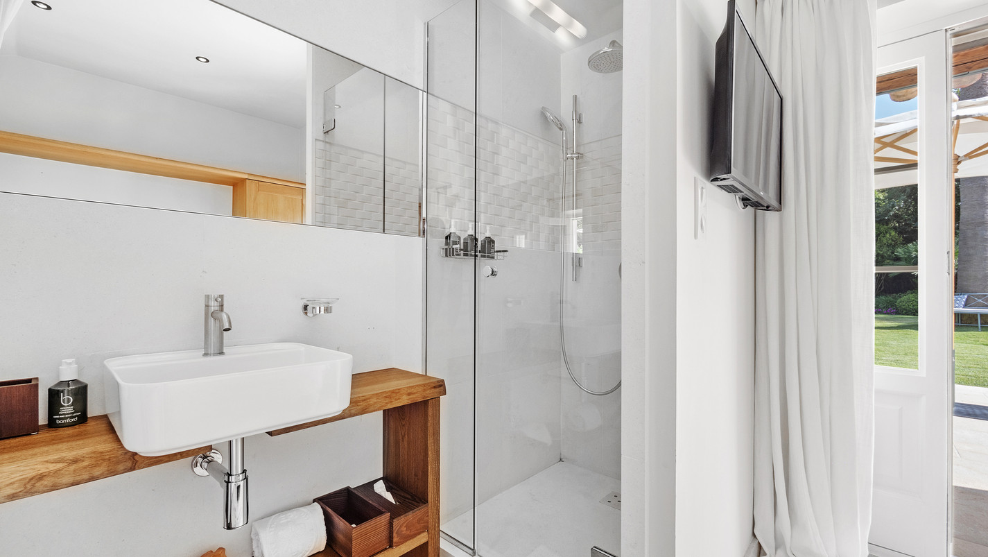 The villa has 5 spacious bedrooms, each equipped with a king-size bed for optimal rest. In terms of bathrooms, you will enjoy 5 sophisticated en-suites: 3 with shower and 2 with bathtub, ensuring a personal and relaxing space for each guest.