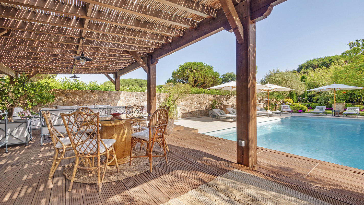 Implanted in a natural environment of approximately two hectares, this modern villa of around 300 m² is located a few minutes from the beaches of Escalet and Pampelonne.