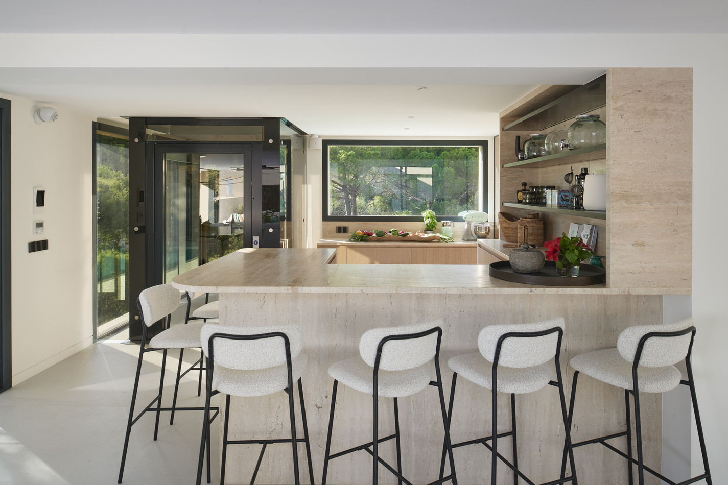 L'intérieur est équipé de tout le confort moderne : 7 salles de bains (6 avec douche et 1 avec baignoire), une cuisine américaine entièrement équipée avec des appareils haut de gamme comme un lave-vaisselle, machine à café, et un grand réfrigérateur. La villa dispose de 7 télévisions, d'un coffre-fort, d'un fer à repasser, et d'un système de climatisation complet.
